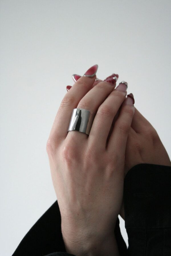 The ‘claw’ ornament is crafted from a unique patinating silver alloy, designed to develop a natural discoloration over time, enhancing the character of the piece. However, this does not affect the ring’s exceptional strength, durability, or resistance. Its stainless steel base remains as solid and resilient as ever.