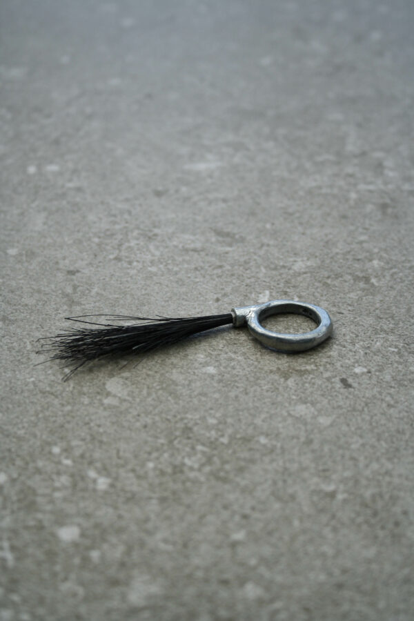 This ring is cast from a special patinating alloy, designed to evolve with time. Reacting to the pH balance of your skin, its once polished surface gradually transforms into a deep, matte grey-black patina, giving the ring a raw, stone-like character. This natural and intentional process highlights how even seemingly lifeless materials like metal have their own journey, shaped by their environment.